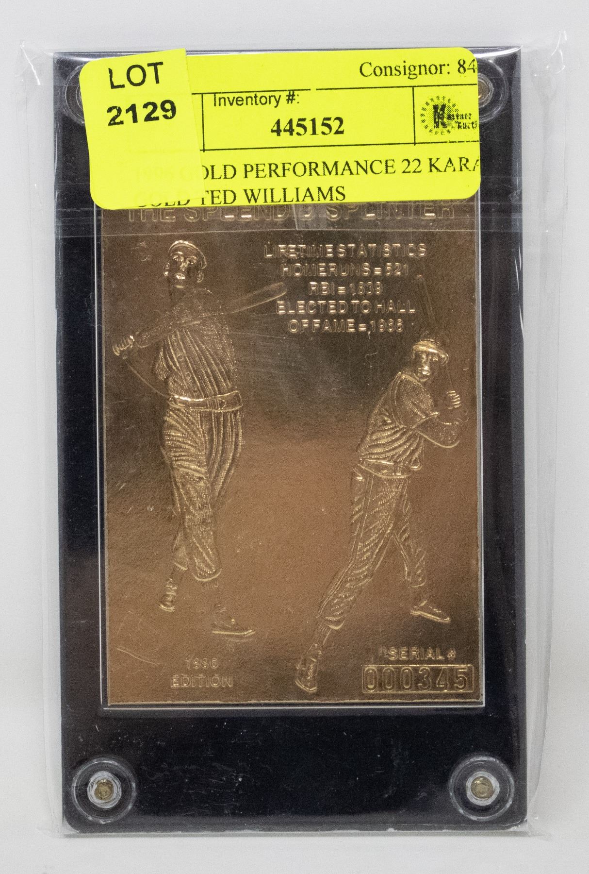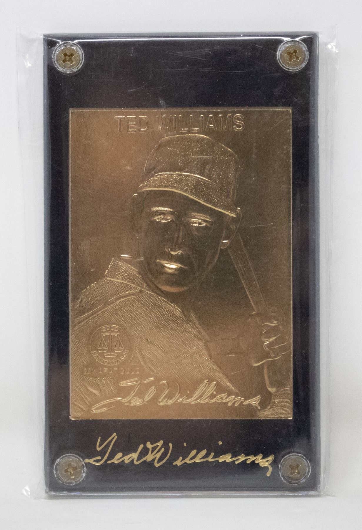 SN: 000345. GOLD CARD HIGHLIGHTS TED WILLIAMS LIFETIME STATISTICS. "THE SPLENDID SPLINTER" CARD HAS A GOLD SCRIPT SIGNATURE ON CASE.