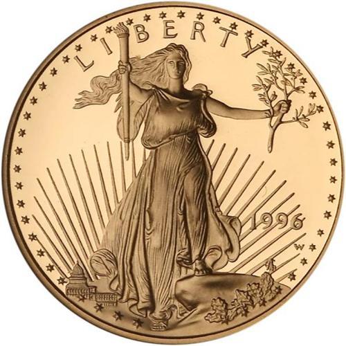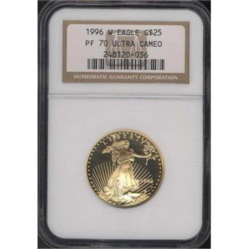 <b>1996 Gold Eagle $25. NGC graded PF70 UC.</b> Collector's Universe price: $1130. A nice golden mint sparkle shoots from this well frosted, perfect Proof 70 coin <b>(PCGS # 9907)</b>