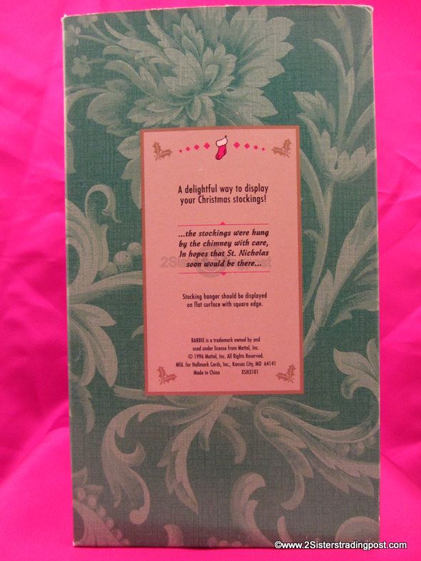 1996 "Holiday Barbie Stocking Hanger" by Mattel, Inc. Mfd. for Hallmark Cards Inc. Barbie is