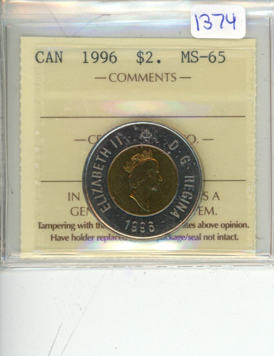 1996 ICCS graded, Canadian 2 dollar coin - MS65