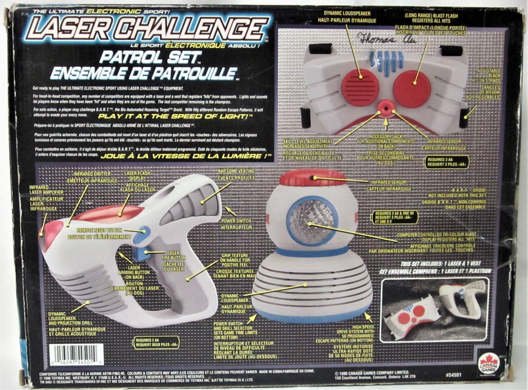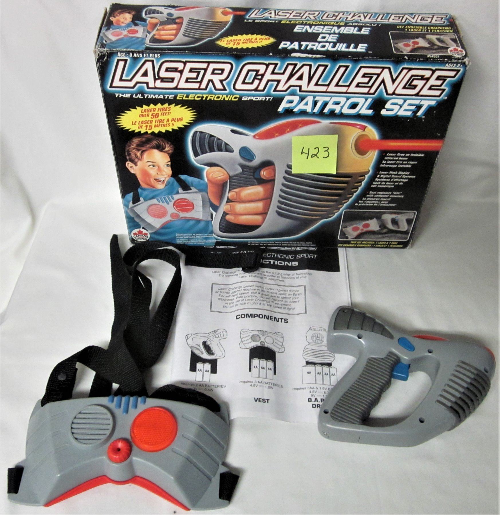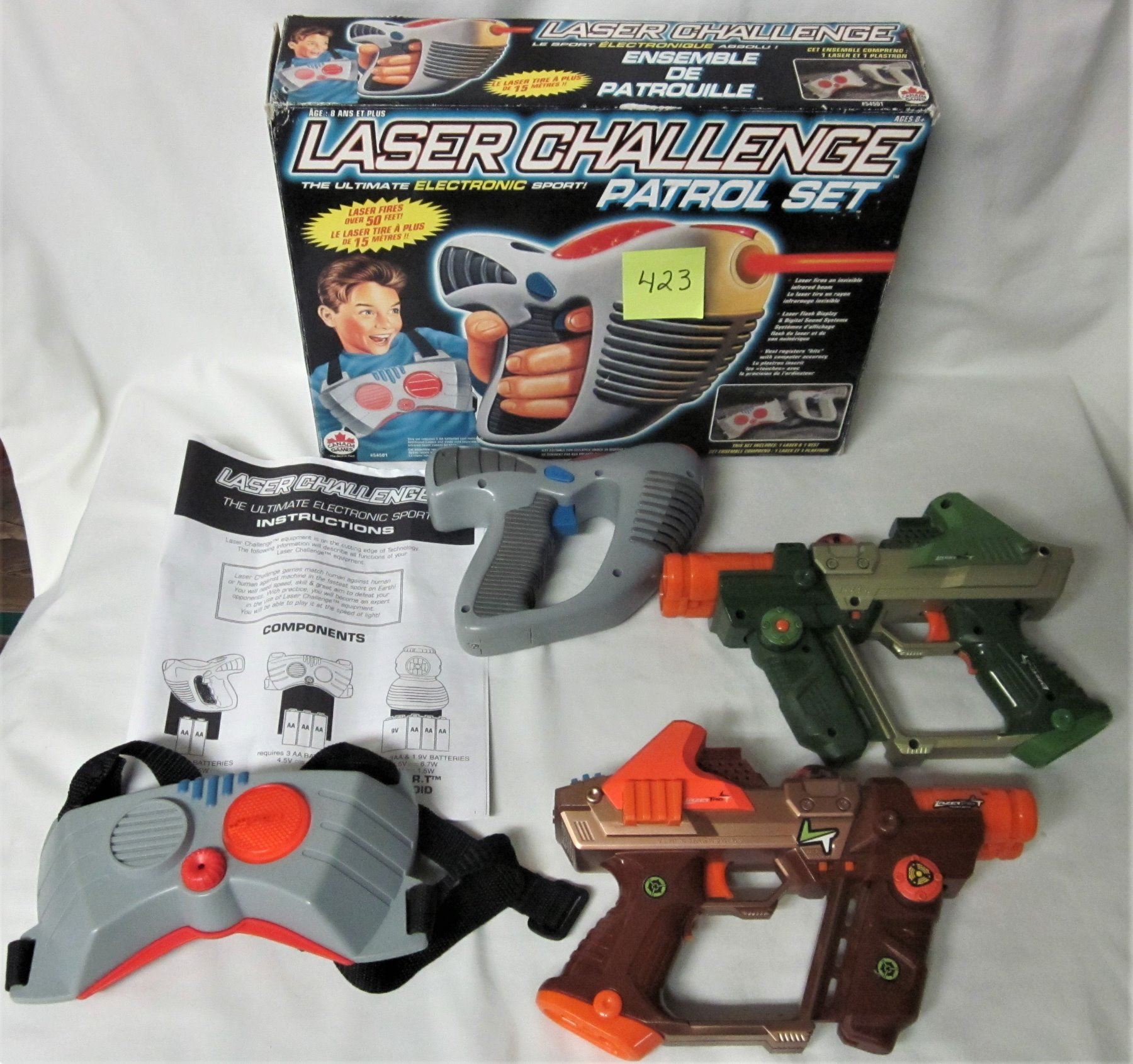 1996 LASER CHALLENGE PATROL SET- LASER & VEST BOXED INST. 2 TIGER ELECTRONICS LASER TAG PISTOLS