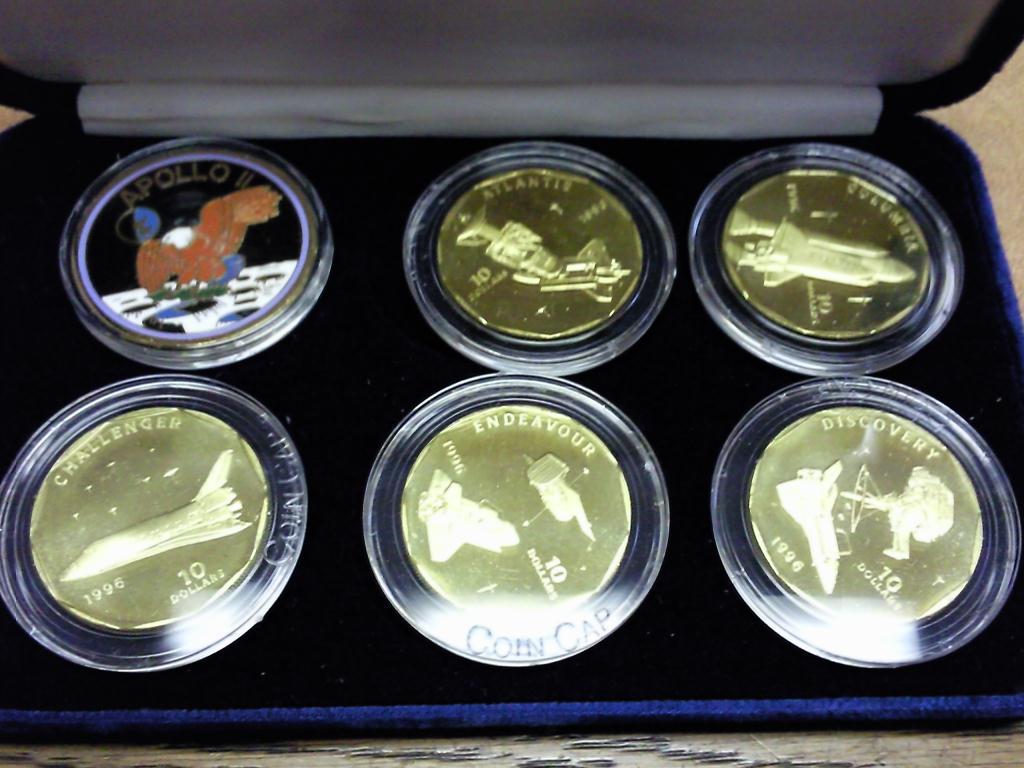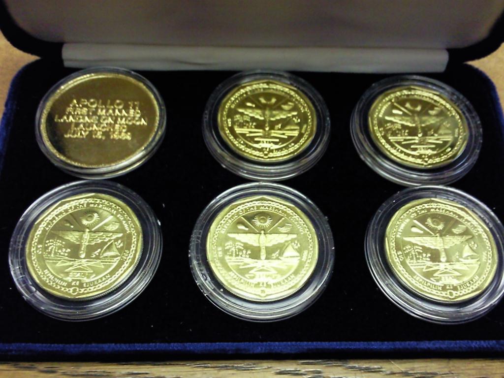 5-$10 Brass Coins And Colorized Apollo Token In Nice Blue Case