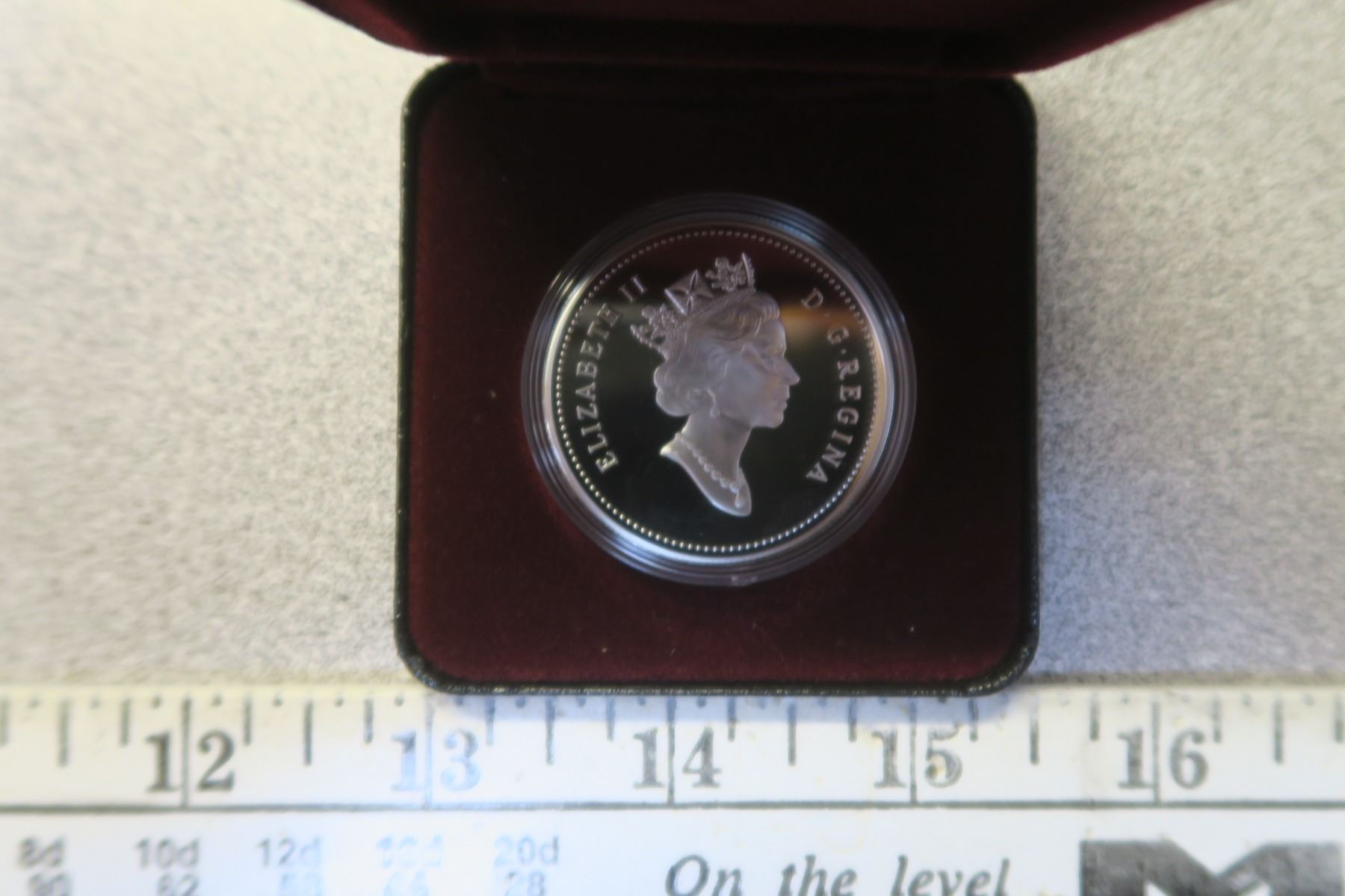 1996 McIntosh Apple Silver Dollar. 200th Anniversary of the most famous Canadian apple named after John McIntosh. Housed in its original case of issue. Proof with Ultra Heavy Cameo. Bright White.