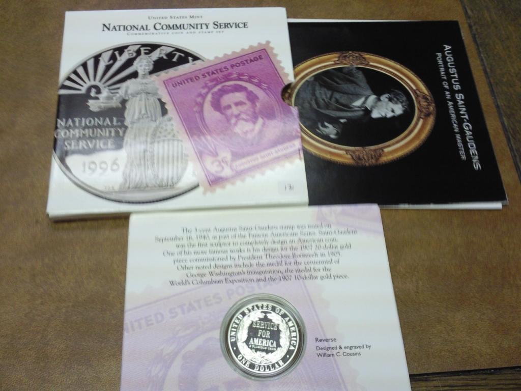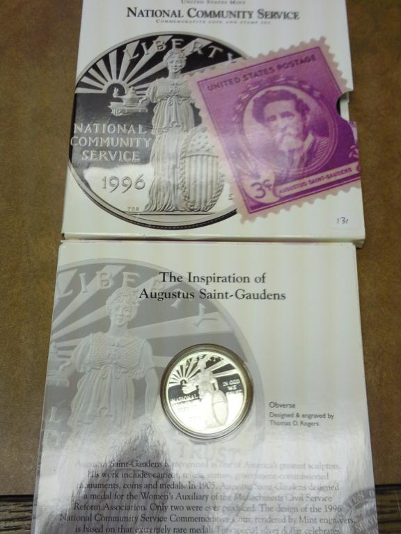 Contains: Proof Silver Dollar And 3 Cent Stamp