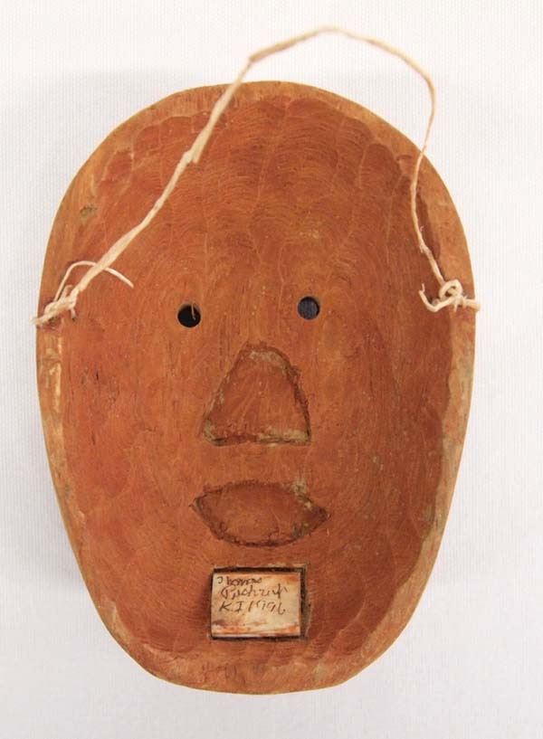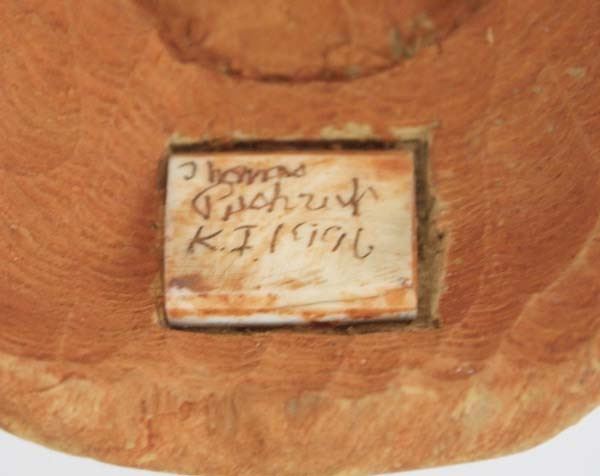 1996 Northwest Coast Carved Wood Mask by Thomas Annorak Pushruk (1925-2010) Inupiat artist, signed by artist, measures 3'' x 4'', Pushruk was known for his ivory carvings.