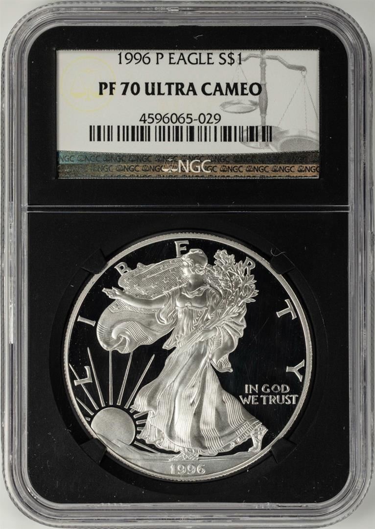 1996-P $1 Proof American Silver Eagle Coin NGC PF70 Ultra Cameo Black Core