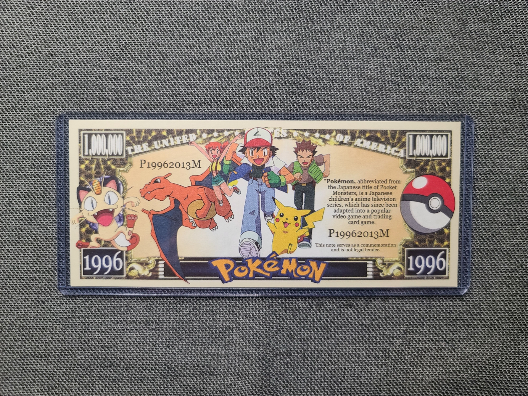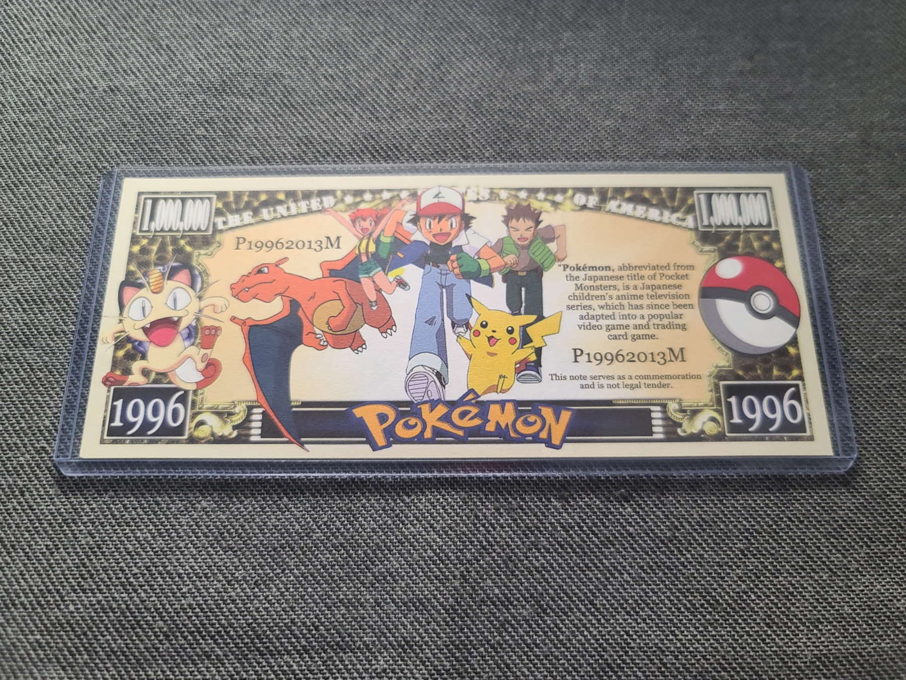 1996 Pokemon One Million Dollar Bill In Protective Case - Mint Condition