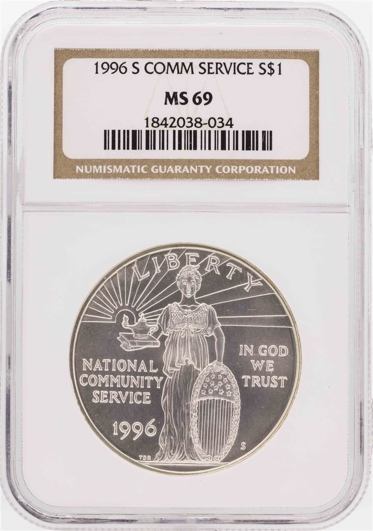 One 1996-S $1 Community Service Commemorative Silver Dollar Coin NGC MS69. NGC Certified.