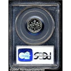 1996-S 10C Clad PR70 Deep Cameo PCGS. A gorgeous proof Dime that has a needle-sharp strike and obvious Deep Cameo contrast. As immaculate today as the moment it left the dies. Interest in Roosevelt Dimes was intense in 1996 due to the addition of the 1996-W Dime in mint sets that year, the only appearance of the West Point mintmark on a circulating denomination. Population: 12 in 70 (3/04). <BR><BR><B>Important notice:</B> Heritage usually auctions material at the rate of 200-250 lots per hour. On some occasions eBay Live bid software or the Internet may not be able to keep up with the pace of the auction. We recommend placing a realistic absentee bid now as insurance to avoid disappointment. Occasionally the auctioneer may eliminate or reject an eBay Live bid, and the auctioneer may also reopen a lot after the close of the eBay live bidding (usually because we missed an audience bid), and may reject your bid even if it shows you as the winning bidder. By bidding via eBay Live, you agree that Heritage may award the lot to another bidder at its sole discretion under the circumstances described above or any other reasonable circumstances. Since eBay bids are not shown to us until we open the lot on the floor, we treat those bids just like floor bids. In most cases the floor responds before the eBay bid is presented to us, due to Internet lag time, so for consistency we have made it a policy that floor bids are always considered first over tie eBay live bids. Also please note that all Heritage lots purchased through eBay Live carry a 20% Buyer's Premium. Please make sure you read the Terms and Conditions before you bid. <BR><BR><B>IMPORTANT ANNOUNCEMENT ABOUT RESERVES:</B> Heritage now divulges all reserves on its web site 7 days before every auction. If you want to know whether the reserve on this lot has been met, and if not, what the reserve amount is, please visit this lot page on the HeritageCoin.com web site, or email: bid@HeritageGalleries.com