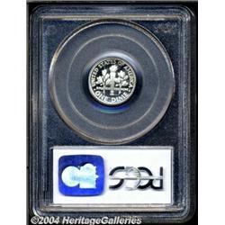 1996-S 10C Silver PR70 Deep Cameo PCGS. A few freckles of golden-brown patina visit Roosevelt's portrait and the upper left reverse field. This spectacularly preserved specimen has undeniable Deep Cameo contrast between the snow-white devices and the jet-black fields. The dies are rotated a few degrees clockwise, which is somewhat unusual for a modern proof issue. Population: 15 in 70 (3/04). <BR><BR><B>Important notice:</B> Heritage usually auctions material at the rate of 200-250 lots per hour. On some occasions eBay Live bid software or the Internet may not be able to keep up with the pace of the auction. We recommend placing a realistic absentee bid now as insurance to avoid disappointment. Occasionally the auctioneer may eliminate or reject an eBay Live bid, and the auctioneer may also reopen a lot after the close of the eBay live bidding (usually because we missed an audience bid), and may reject your bid even if it shows you as the winning bidder. By bidding via eBay Live, you agree that Heritage may award the lot to another bidder at its sole discretion under the circumstances described above or any other reasonable circumstances. Since eBay bids are not shown to us until we open the lot on the floor, we treat those bids just like floor bids. In most cases the floor responds before the eBay bid is presented to us, due to Internet lag time, so for consistency we have made it a policy that floor bids are always considered first over tie eBay live bids. Also please note that all Heritage lots purchased through eBay Live carry a 20% Buyer's Premium. Please make sure you read the Terms and Conditions before you bid. <BR><BR><B>IMPORTANT ANNOUNCEMENT ABOUT RESERVES:</B> Heritage now divulges all reserves on its web site 7 days before every auction. If you want to know whether the reserve on this lot has been met, and if not, what the reserve amount is, please visit this lot page on the HeritageCoin.com web site, or email: bid@HeritageGalleries.com