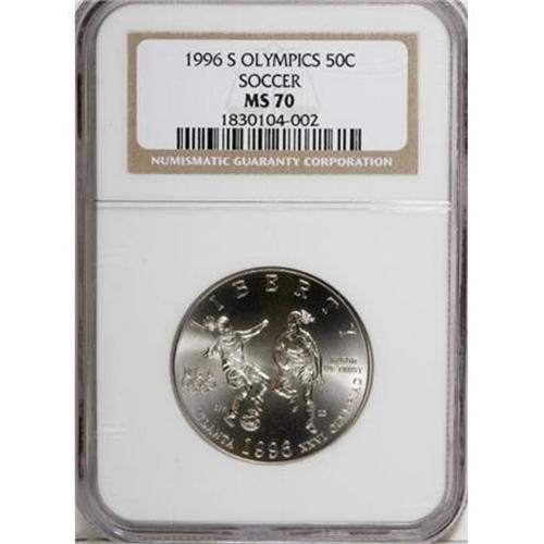 <B>1996-S 50C Olympic/Soccer Half Dollar MS70 NGC.</B></I> NGC Census: (108/0). PCGS Population (27/0). Numismedia Wsl. Price for NGC/PCGS coin in MS70: $220. (#9714)<BR><BR><b>Shipping:</b> Coins & Currency (<a target="_blank" href="http://www.heritageauctions.com/common/shipping.php">view shipping information</a>)