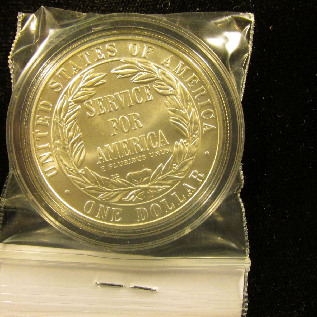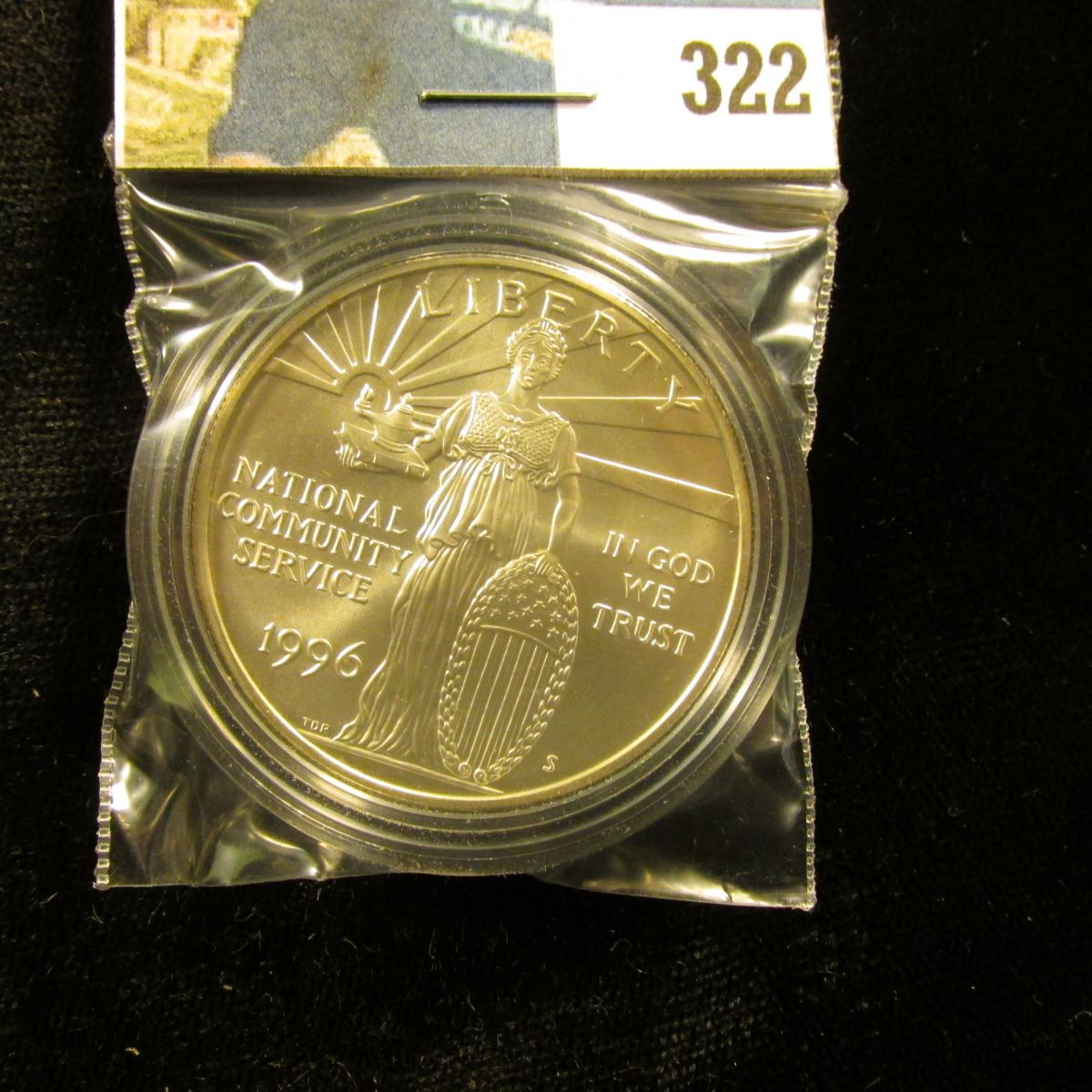 1996 S U.S. National Community Service GEM BU 69 Silver Dollar, encapsulated.