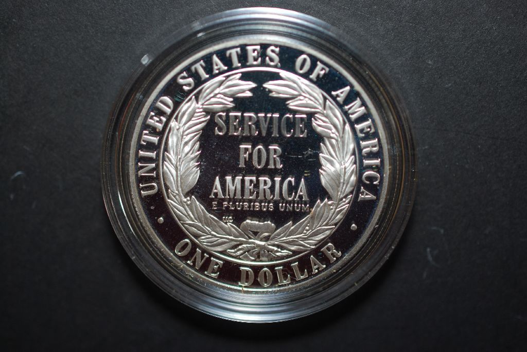 1996-S US National Community Service Commemorative $1 Proof Coin In Velvet Box With COA Included; 90% Silver .76 Oz.; EST. $160-180