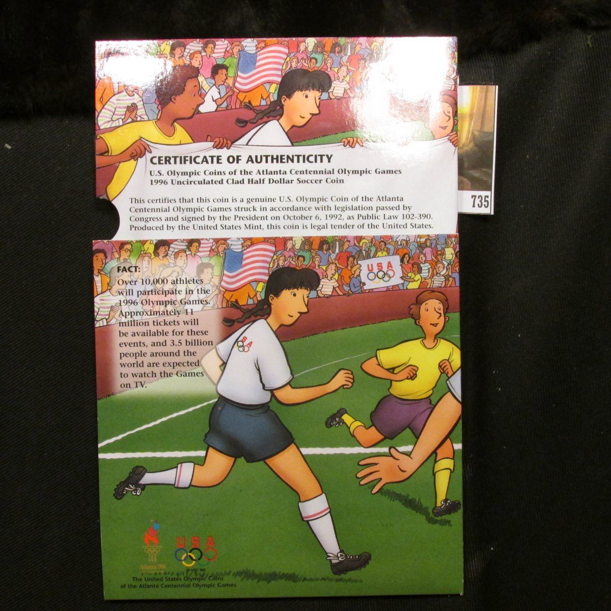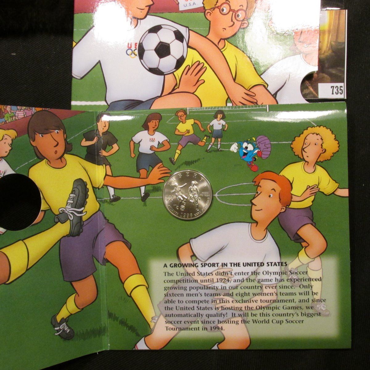 1996 S Uncirculated Clad Half-Dollar Soccer Coin U.S. Olympics Atlanta Centennial Olympic games in original Young Collector's edition packaging.