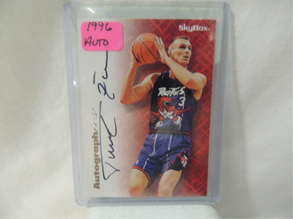 1996 SKYBOX ZAN JABAK AUTOGRAPHED BASKETBALL PLAYER CARD. AS SHOWN. SEE PHOTO FOR MORE DETAILS. PLEASE BE ADVISED, AND INFORMED REGARDING SIGNATURES OR AUTOGRAPHS THAT WE SELL AT AUCTION: WE ARE NOT AUTHENTICATORS, AND WE DO NOT AUTHENTICATE, OR VALIDATE ANY AUTOGRAPHS OR SIGNATURES THAT WE OFFER AT AUCTION. SOME AUTOGRAPHS OR SIGNATURES MAY COME WITH AN AUTHENTICATION FROM ANY ONE OF LITERALLY HUNDREDS OF AUTHENTICATORS ACROSS THE COUNTRY, AND AROUND THE WORLD. WE DO NOT ENDORSE ANY AUTHENTICATOR, NOR DO WE GUARANTEE THAT ANY AUTOGRAPH OR SIGNATURE IS AUTHENTIC, OR THAT IT WILL PASS AUTHENTICATION BY ANY AUTHENTICATOR. ALL AUTOGRAPHS OR SIGNATURES ARE SOLD