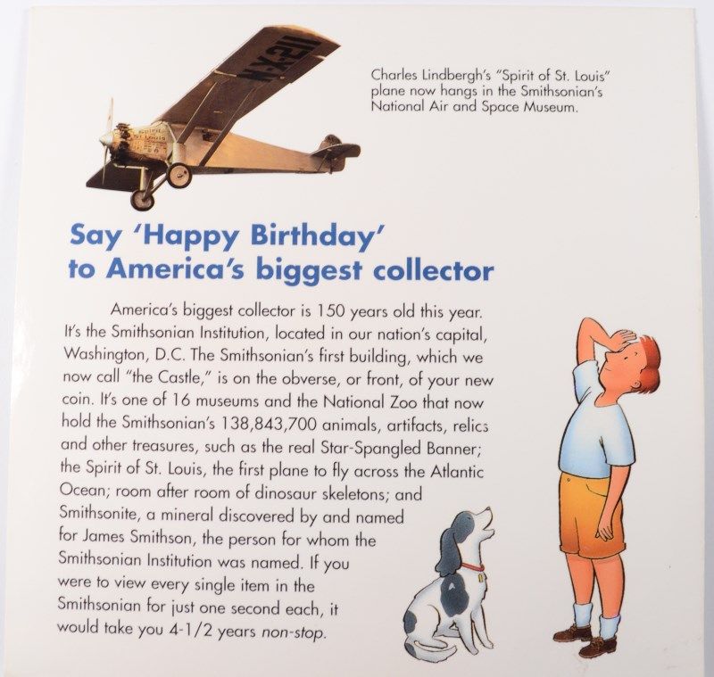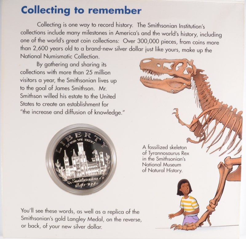 1996 SMITHSONIAN INSTITUTION PROOF COMMEMORATIVE SILVER DOLLAR, SPECIAL EDITION