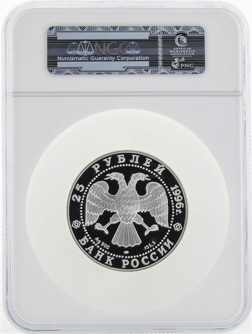 One 1996(SP) Russia 25 Roubles 300th Anniversary Silver Proof Coin NGC PF68 Ultra Cameo. NGC Certified.