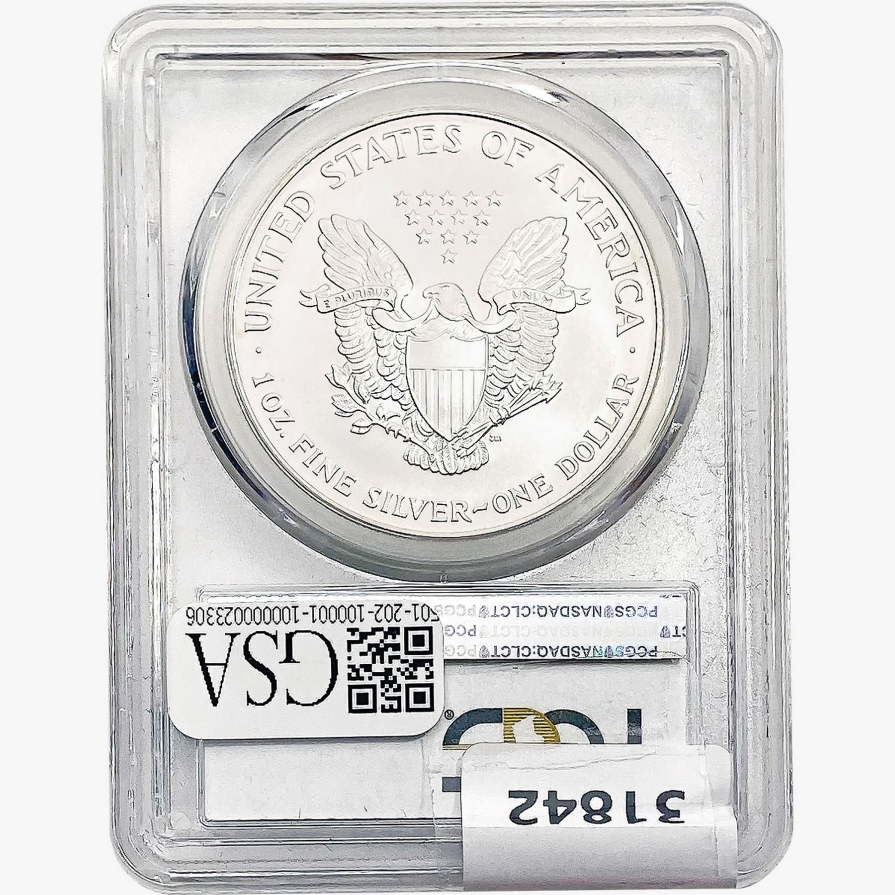 COINS AND CURRENCY LISTED IN GSA’S CATALOG AS GRADED AND ENCAPSULATED BY PCGS, NGC, ANACS, ICG, PCGS CURRENCY, PMG, PCGS BANKNOTE GRADING, CMC OR ANY OTHER THIRD-PARTY GRADING SERVICE ARE LIKEWISE SOLD “AS-IS” EXCEPT AS EXPRESSLY SET FORTH HEREIN. ALL THIRD-PARTY GRADING SERVICE GUARANTEES, INCLUDING AUTHENTICITY, ARE THE SOLE RESPONSIBILITY OF THE THIRD-PARTY GRADING SERVICE AND NOT WARRANTIES OR GUARANTEES OF GSA. BIDDERS SHOULD CONTACT THESE THIRD-PARTY GRADING SERVICES DIRECTLY WITH RESPECT TO ANY CLAIMS OR QUESTIONS THEY MAY HAVE CONCERNING THEIR GUARANTEES AND WARRANTIES. BIDDERS ACKNOWLEDGE AND AGREE THAT AUCTIONEER IS NOT BOUND BY OR LIABLE FOR ANY OPINION OR CERTIFICATION BY ANY THIRD-PARTY GRADING SERVICE. REMOVAL OF A PRODUCT FROM ITS PROTECTIVE CASING OR HOLDER OR ALTERATION OF ANY COIN HOLDER WAIVES ALL RIGHTS CONCERNING THE PRODUCT CONTAINED THEREIN.