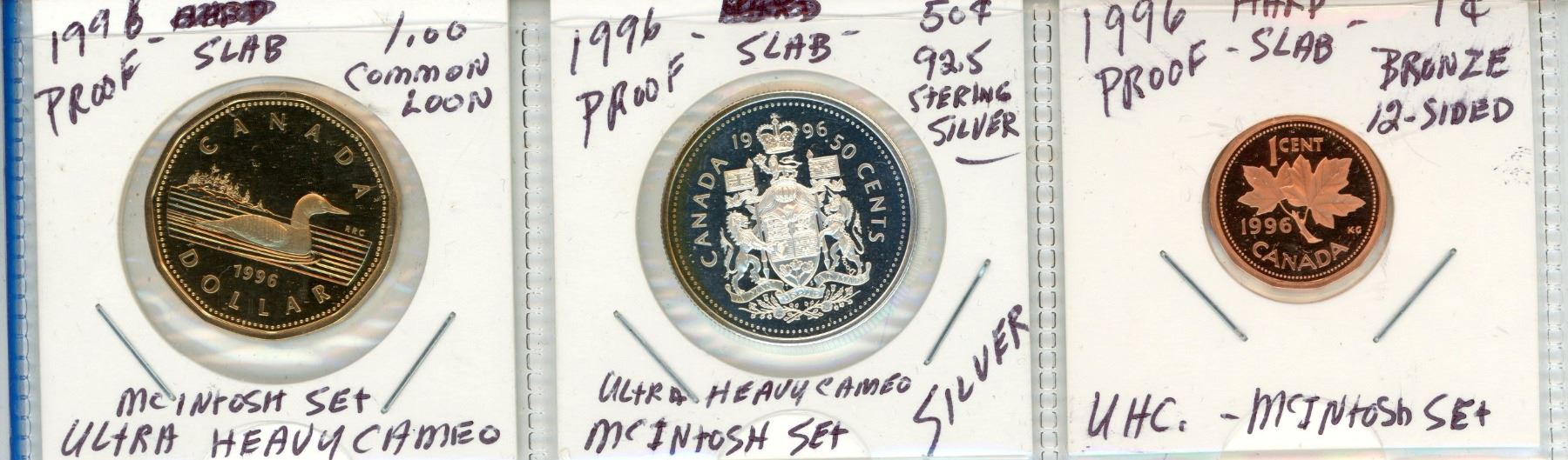 1996 Slab Proofs $1, .50, .01C Coins UHC McIntosh Set