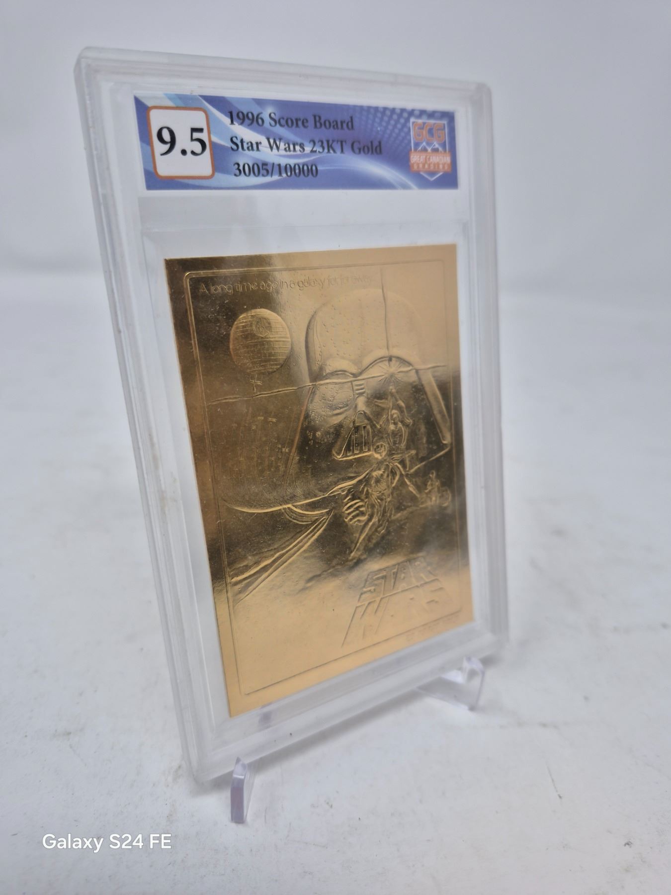 1996 Score Board Star Wars 23KT gold-foil card featuring Darth Vader. Graded 9.5 by Great Canadian Grading. Limited edition: #3005/10000.