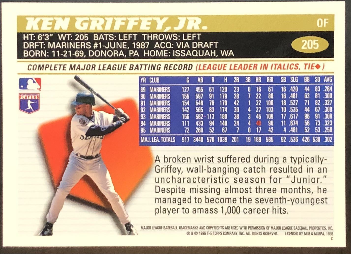 Card #205 MLB, baseball, hall of fame