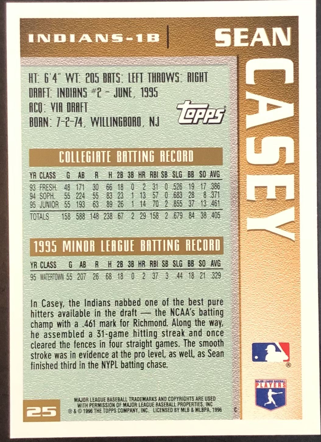 Card #25 MLB, baseball, rookie