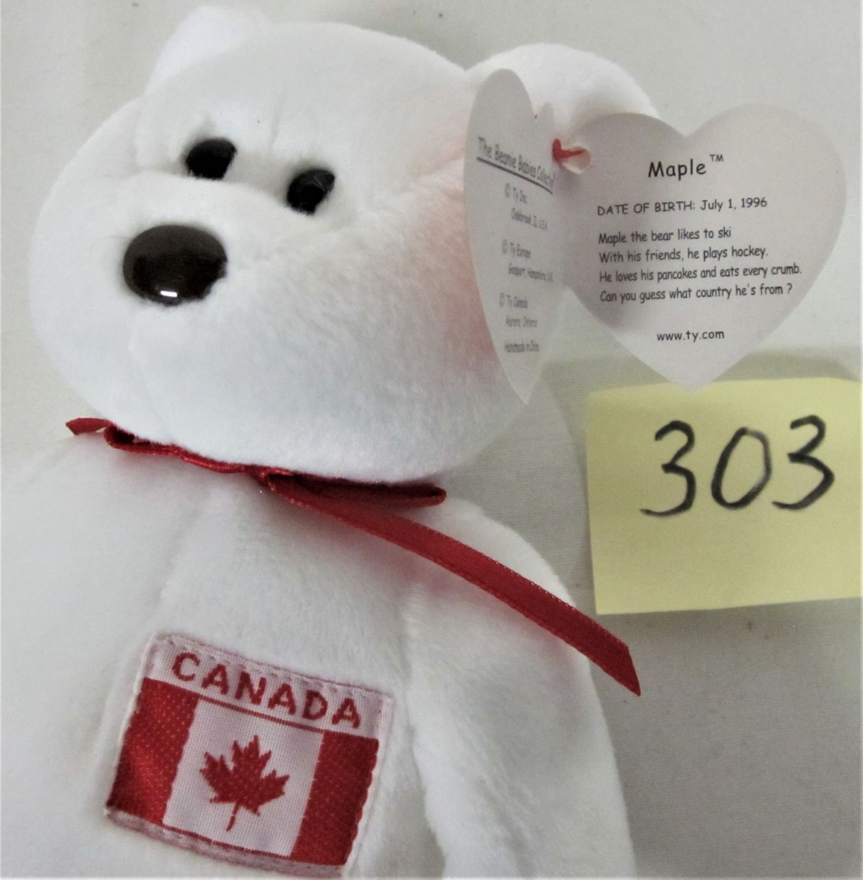 1996 TY Plush Beanie Baby Bear "Maple" All Tags Mint