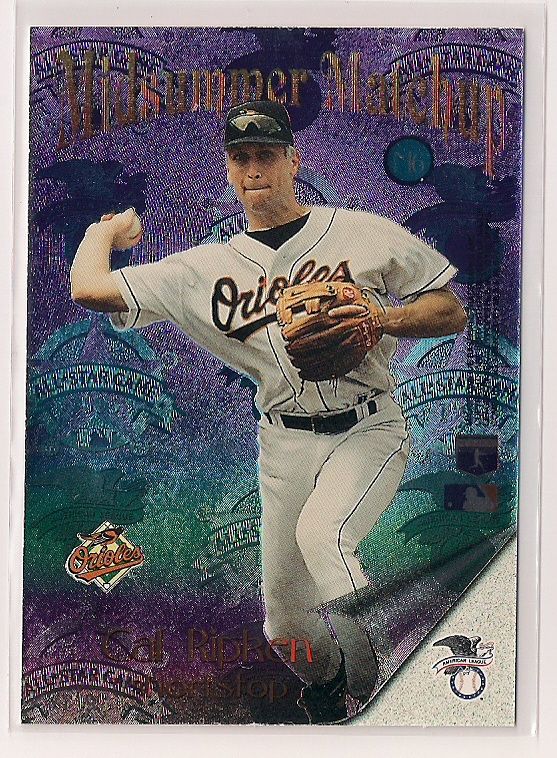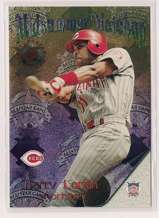 1996 Topps Stadium Club Midsummer Matchup Cal Ripken Jr./Barry Larkin Insert Card. This Insert is Near Mint.
