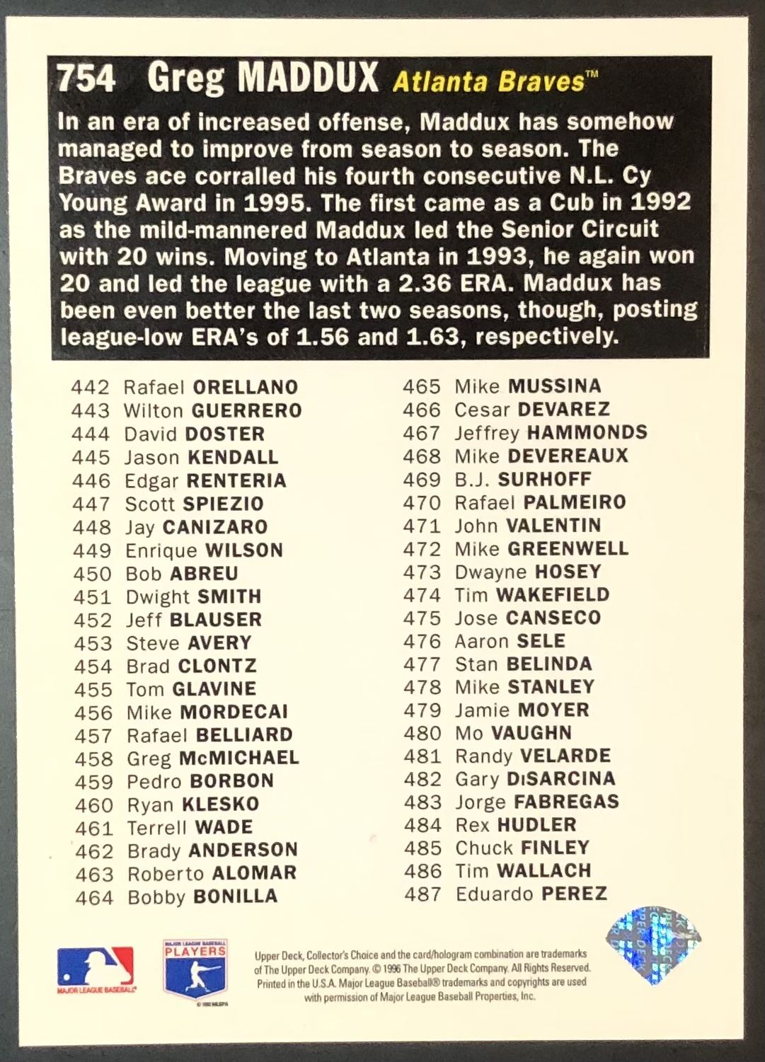 Card #754 UD, MLB, baseball, hall of fame