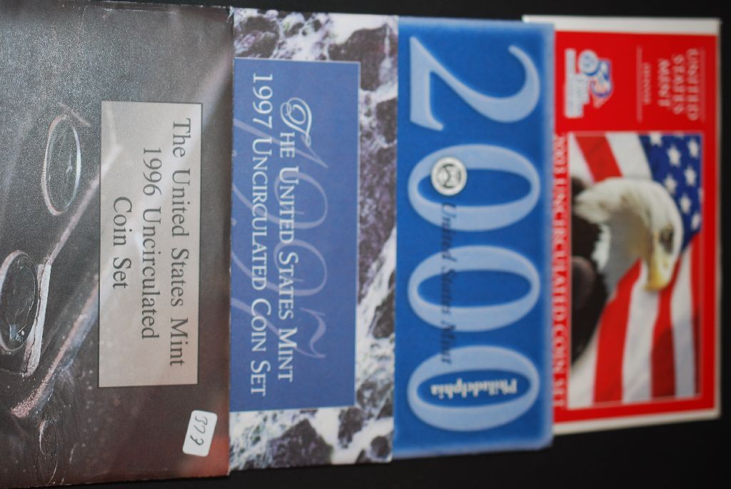 1996 US Mint Coin Set; P&D Mints, 1997 US Mint Coin Set; P&D Mints, 2000-P US Mint Coin Set To Include US Mint State Quarter Coin Set & 2003-D US Mint Coin Set To Include US Mint State Quarter Coin Set; UNC; Lot of 4 Sets; EST. $25-30