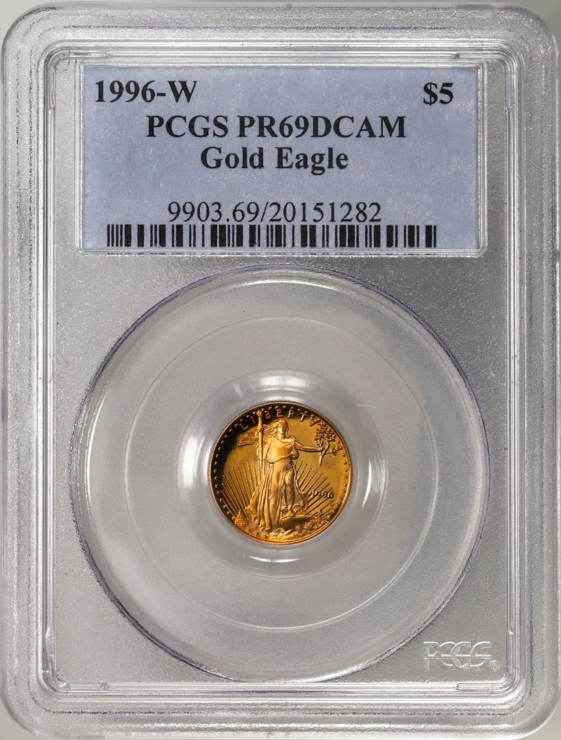 One 1996-W $5 Proof American Gold Eagle Coin PCGS PR69DCAM. PCGS Graded.