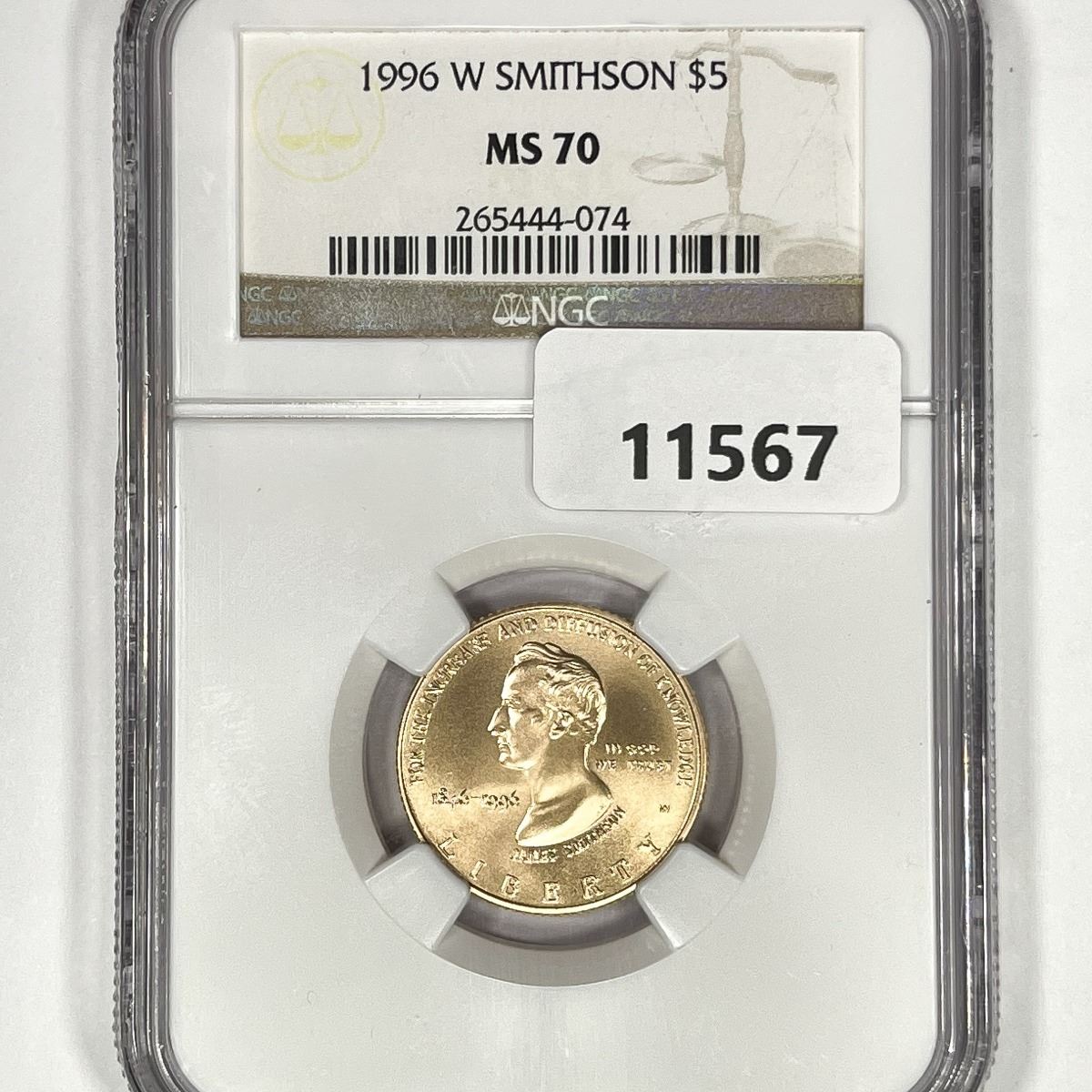 1996-W $5 Smithsonian .24ozt Gold Coin NGC-MS70
