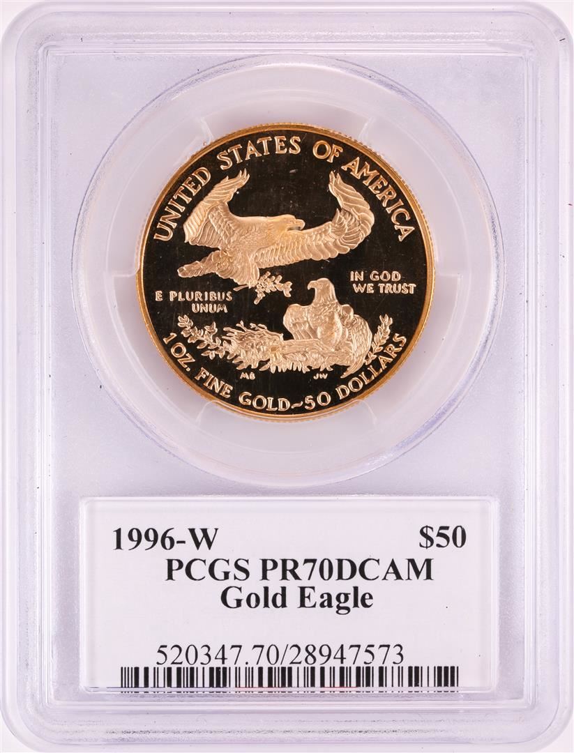One 1996-W $50 Proof American Gold Eagle Coin PCGS PR70DCAM Edmund C. Moy Signature. PCGS Graded.