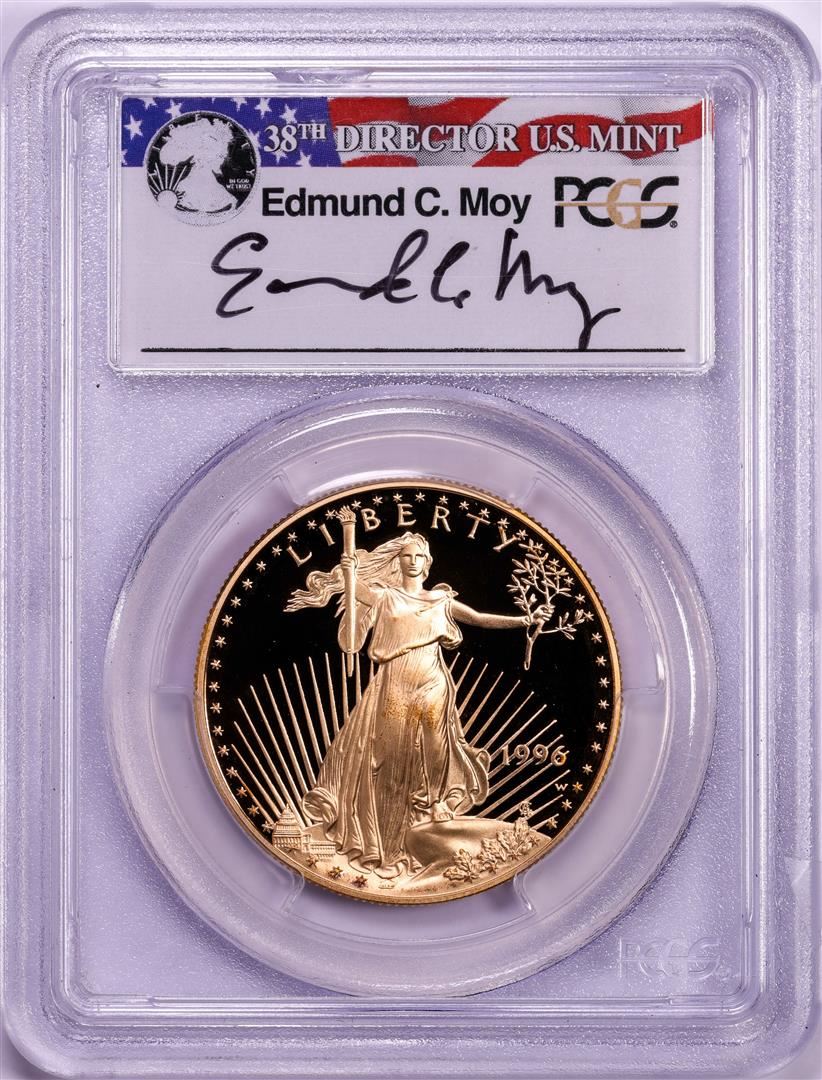 One 1996-W $50 Proof American Gold Eagle Coin PCGS PR70DCAM Edmund C. Moy Signature. PCGS Graded.