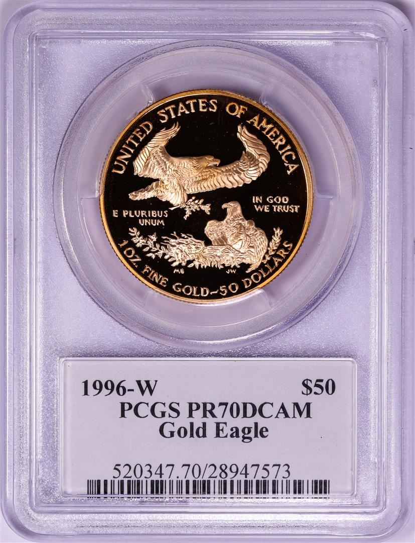 One 1996-W $50 Proof American Gold Eagle Coin PCGS PR70DCAM Edmund C. Moy Signature. PCGS Graded.