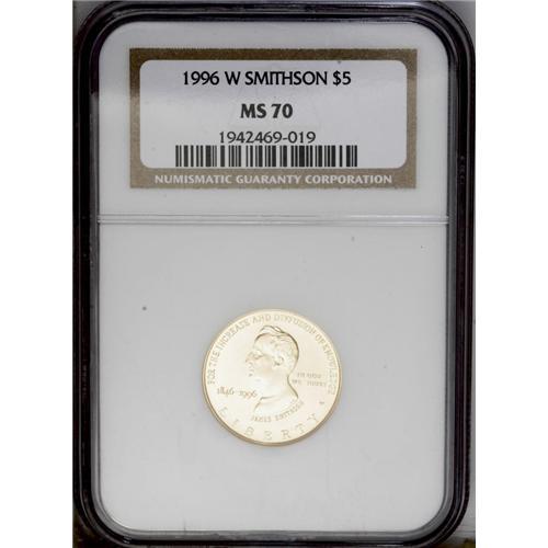 1996-W G$5 Smithsonian Gold Five Dollar MS70 NGC. The 1996-W[G$5] Smithsonian Gold Five Dollar MS70