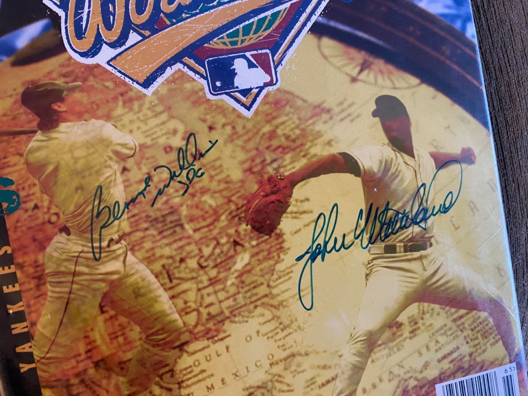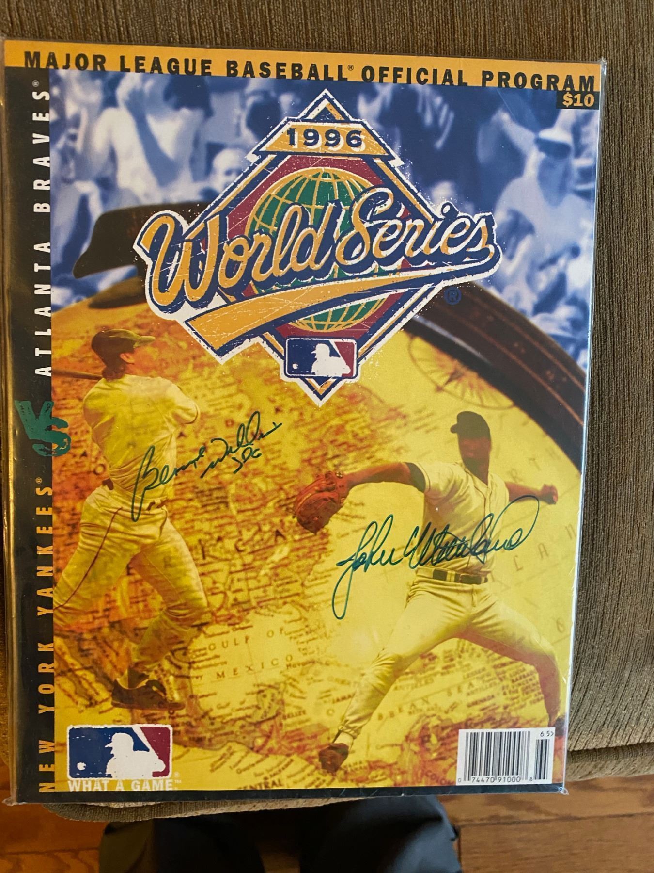 1996 World Series program Signed by Bernie Williams and John Wettland no COA