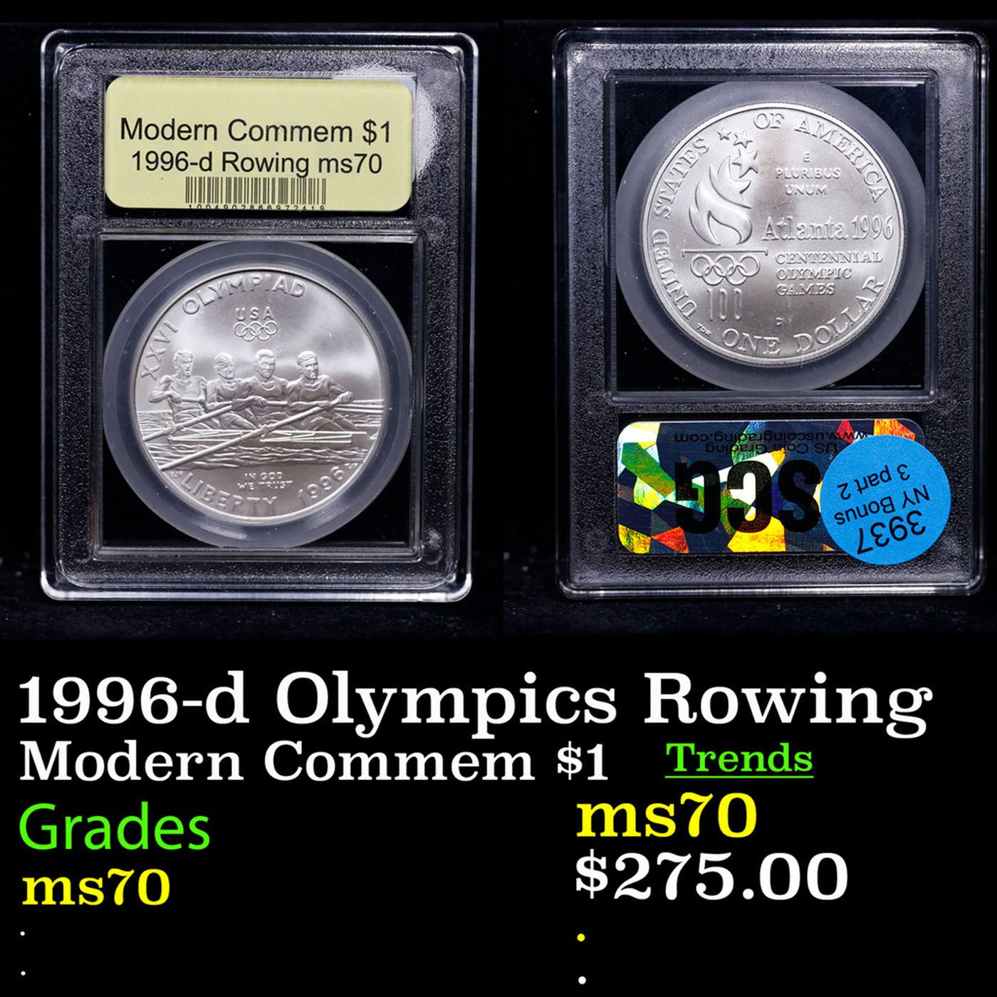 1996-d Olympics Rowing Modern Commem Dollar $1 Graded ms70, Perfection BY USCG