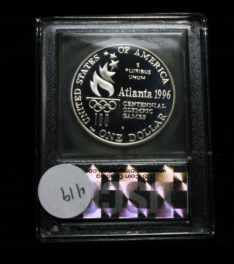 The 1996 Olympic High Jump Silver Dollar was issued was part of an extensive program of commemorative coins for the XXVI Olympiad held in Atlanta, Georgia. There were a total of sixteen different coins issued for the program over the course of two years. Estimated Value $400.