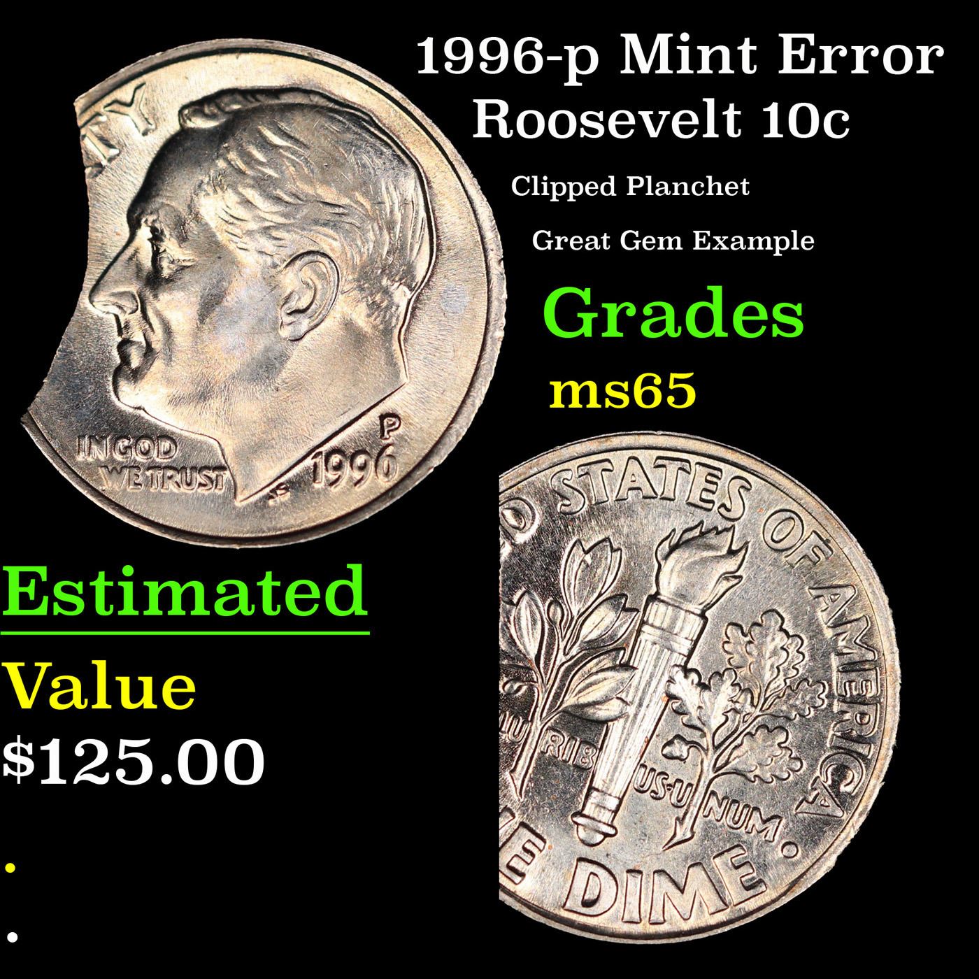 1996-p Mint Error Roosevelt Dime 10c Grades GEM Unc.