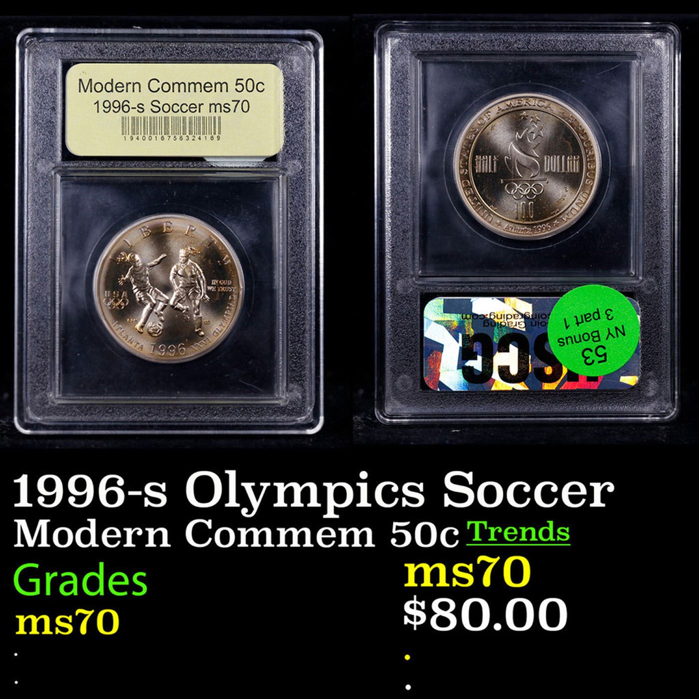 1996-s Olympics Soccer Modern Commem Half Dollar 50c Graded ms70, Perfection BY USCG