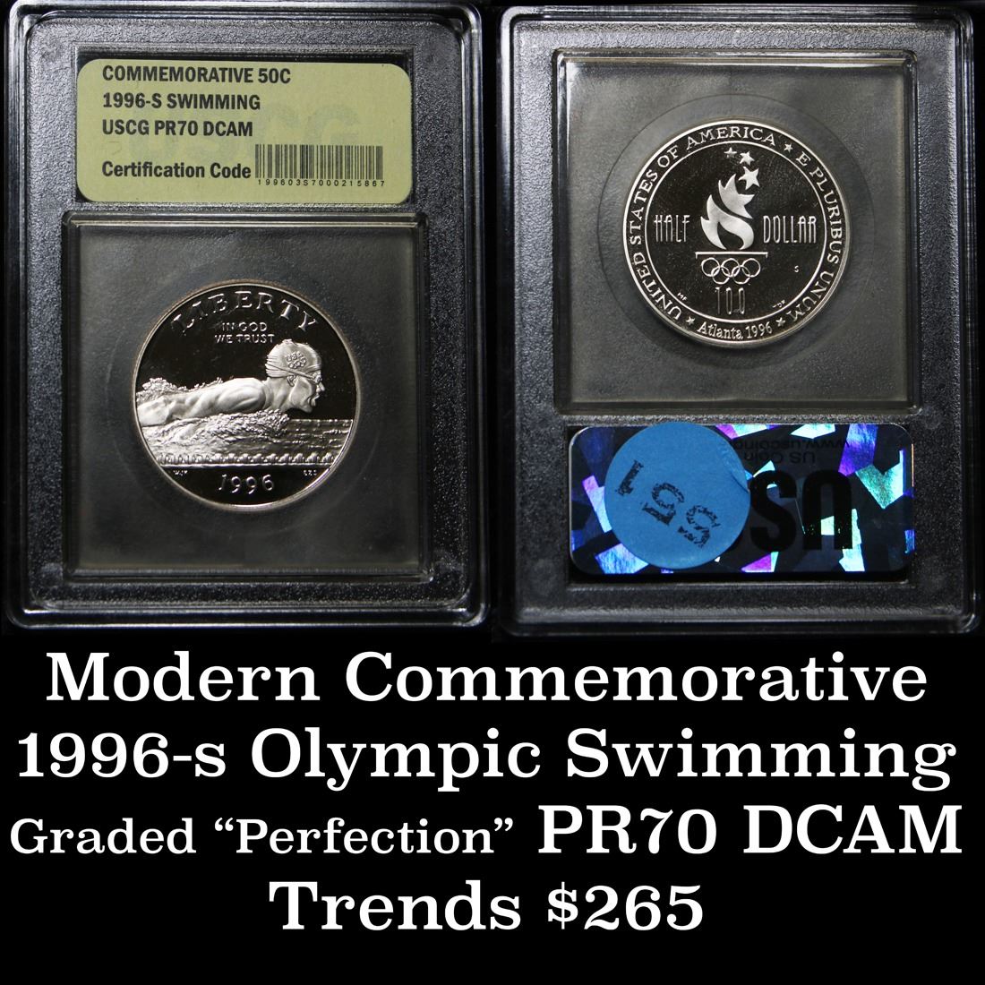 1996-s Olympics Swimming Modern Commem Half Dollar 50c Graded GEM++ Proof Deep Cameo By USCG.