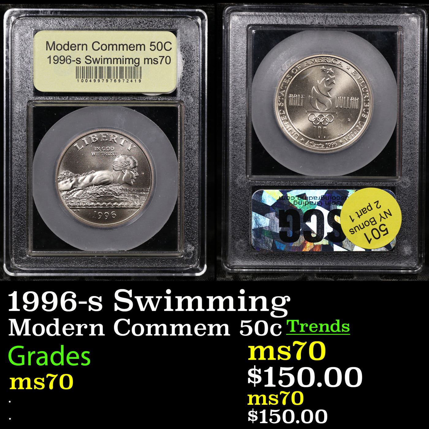 1996-s Swimming Modern Commem Half Dollar 50c Graded ms70, Perfection By USCG.