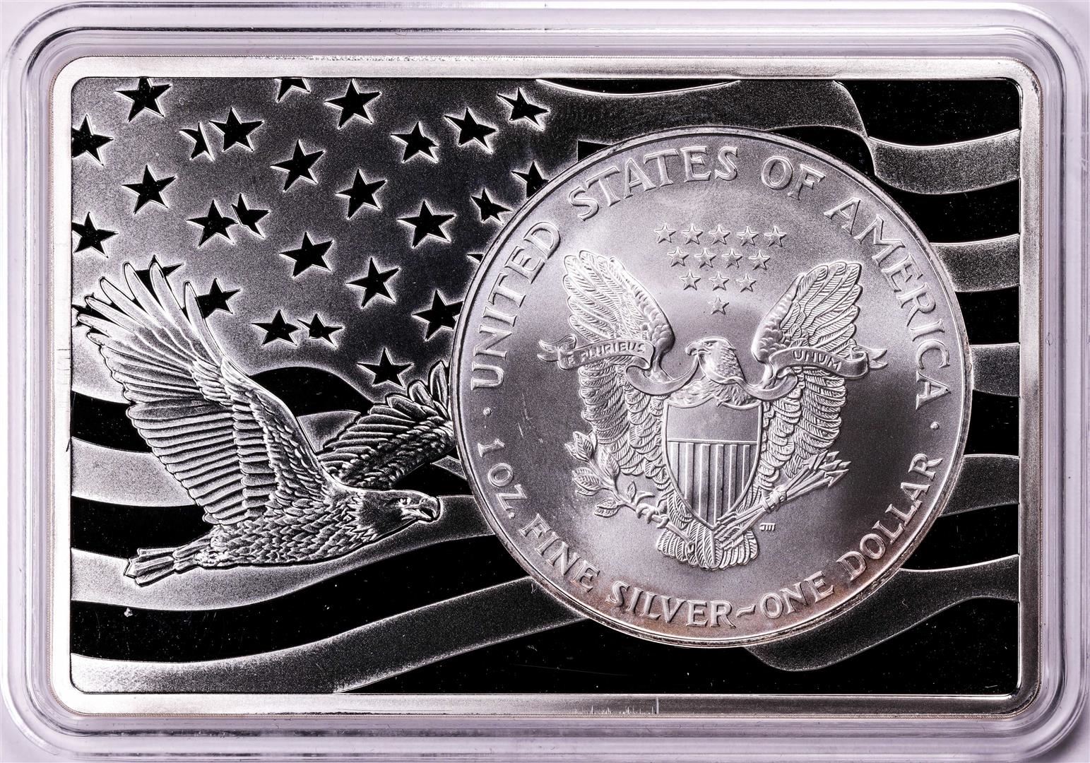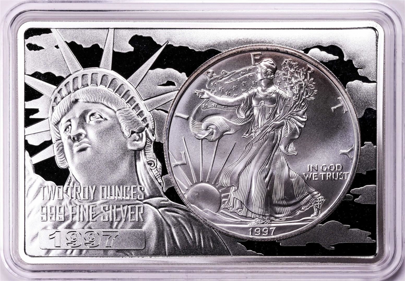 One 1997 $1 American Silver Eagle Coin & 2oz Silver Bar Set.