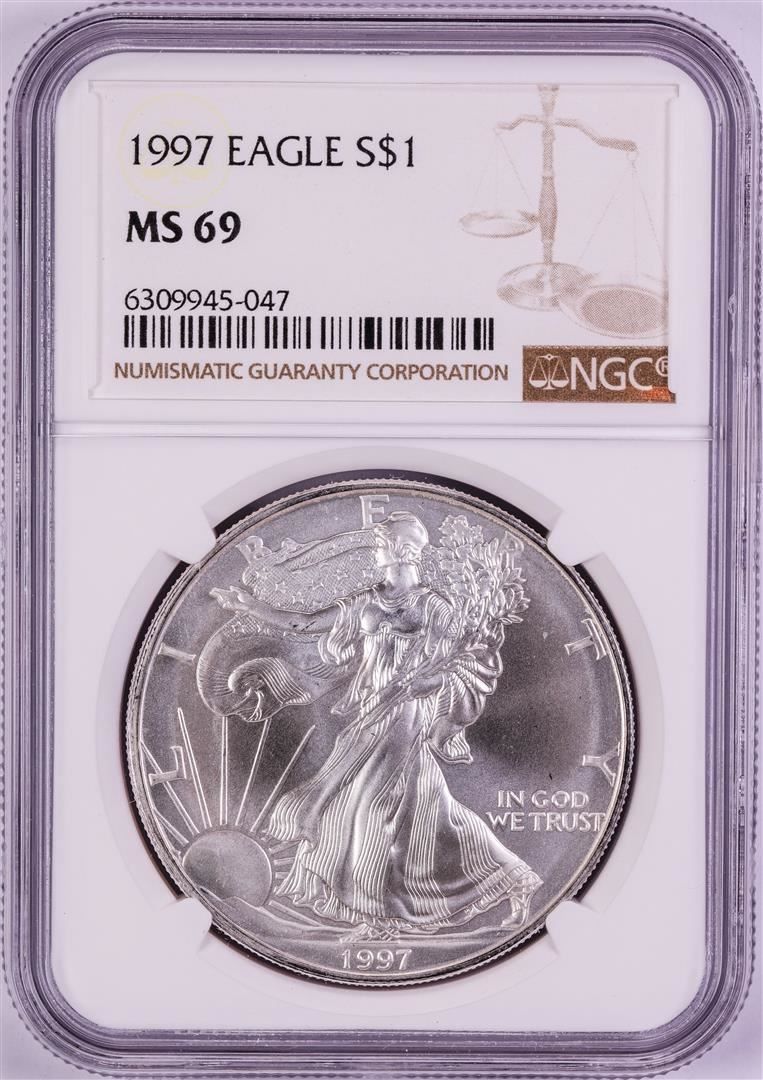 One 1997 $1 American Silver Eagle Coin NGC MS69. NGC Certified.