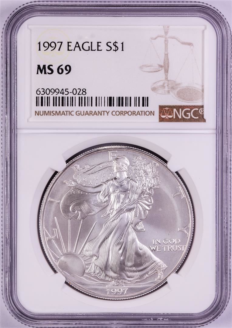 One 1997 $1 American Silver Eagle Coin NGC MS69. NGC Certified.