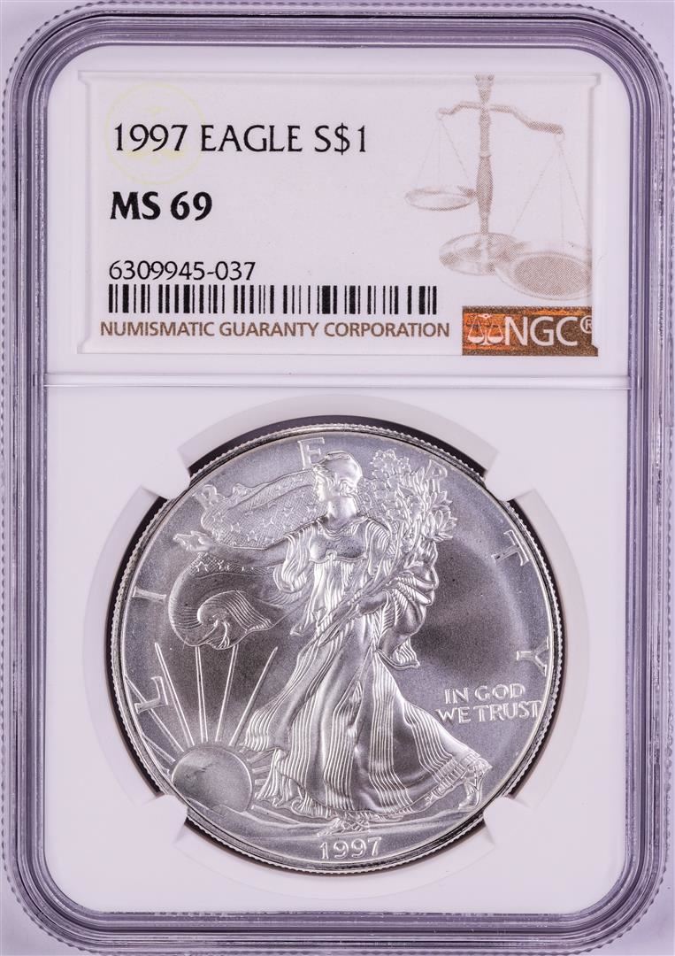 One 1997 $1 American Silver Eagle Coin NGC MS69. NGC Certified.
