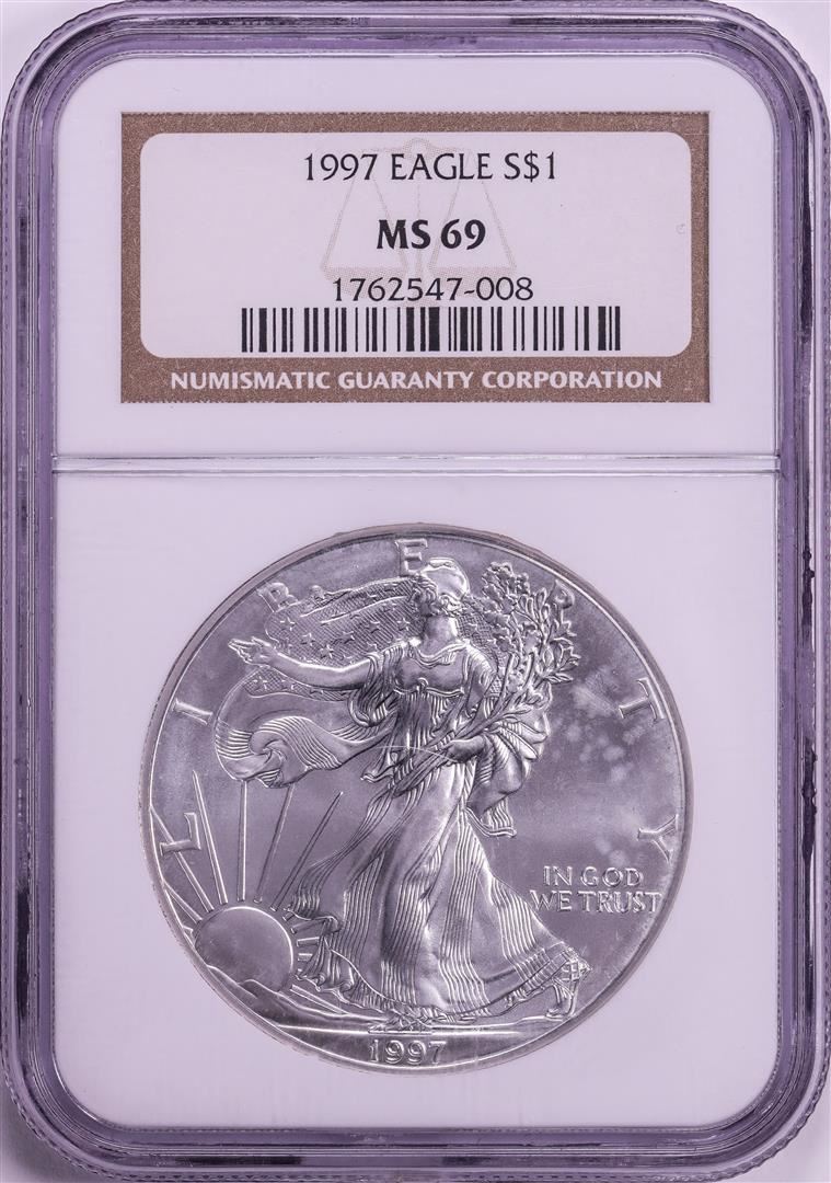 One 1997 $1 American Silver Eagle Coin NGC MS69. NGC Certified.