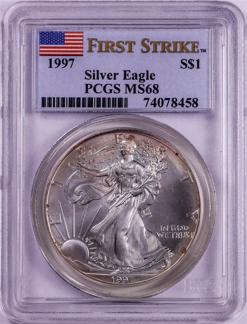 One 1997 $1 American Silver Eagle Coin PCGS MS68 First Strike. PCGS Graded.