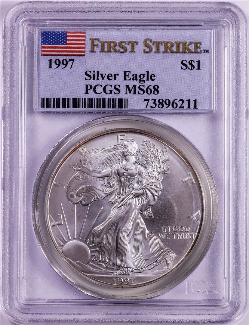 One 1997 $1 American Silver Eagle Coin PCGS MS68 First Strike. PCGS Graded.